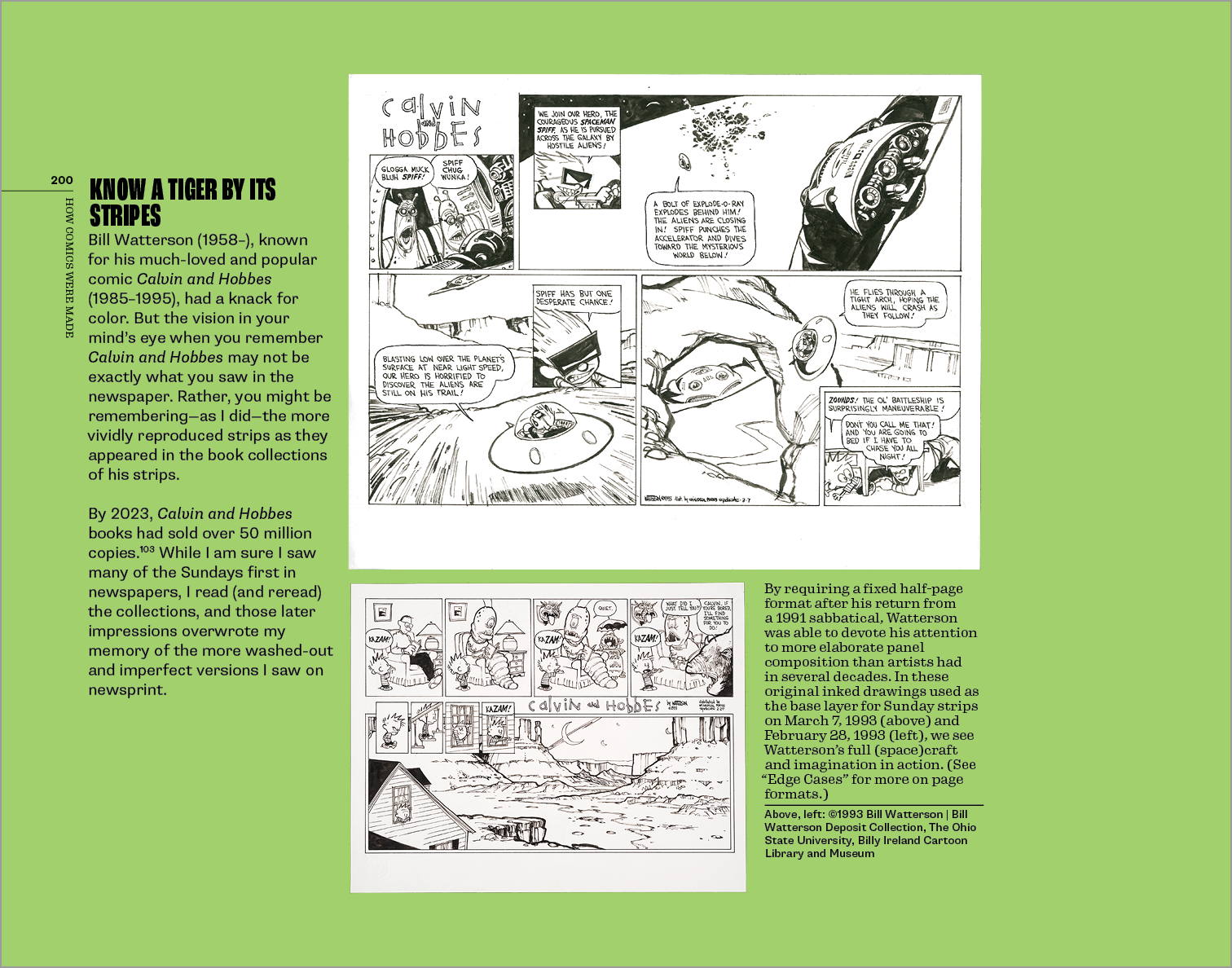 How Comics Are Made relies on my personal collection of printing artifacts backstopped with the help of artists, estates, and institutions that thankfully retained original work and newspaper and printed versions. Key among them is the Billy Ireland Cartoon Library & Museum at the Ohio State University in Columbus, Ohio. You can watch a video I made for a 2022–2023 exhibit at Billy Ireland showing one aspect of the artist-to-newspaper process (it appeared in a 2023–2024 exhibition, too). The Charles M. Schulz Museum and Research Center also provided extensive assistance and material.