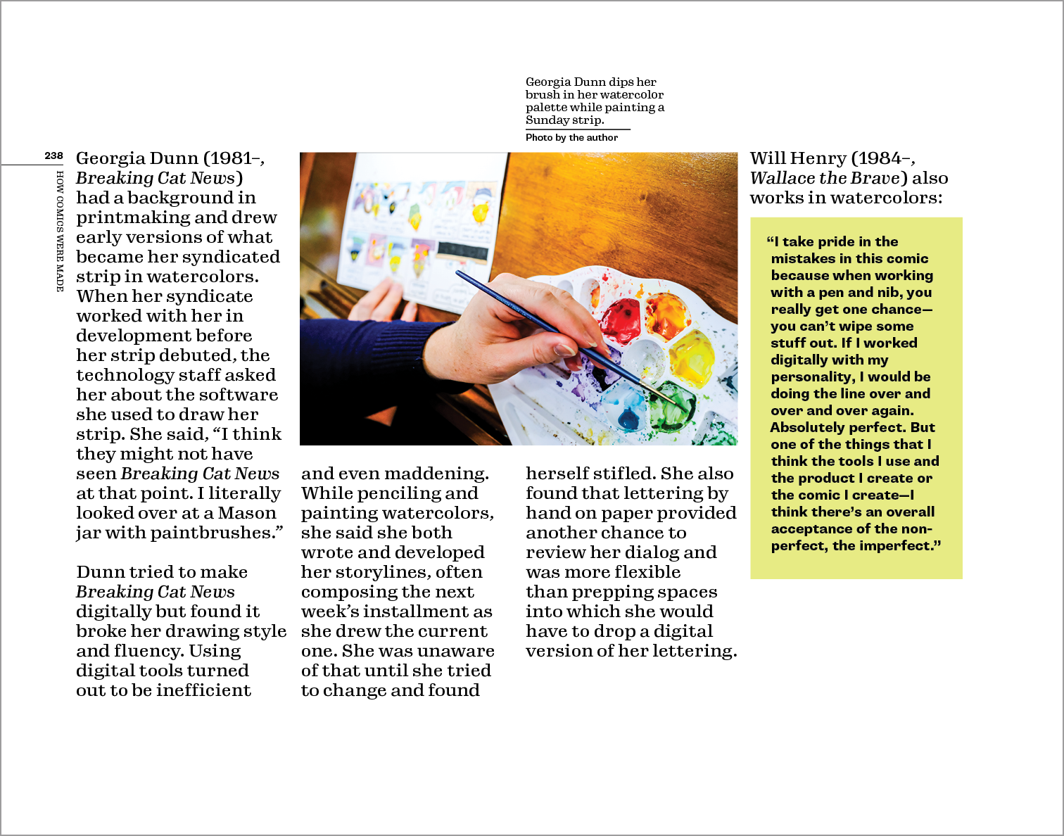 My book How Comics Are Made celebrates the evolution of the comic strip: from the Yellow Kid and early syndication through the very latest webcomics. This covers the whole ball of wax of how artists, knowing their newsprint medium, drew their comics and marked drawings up for color reproduction; how printers put that work through the most arcane and impossible-to-believe operations to get them onto paper; and how modern cartoonists produce cartoons for print and online or web-only.